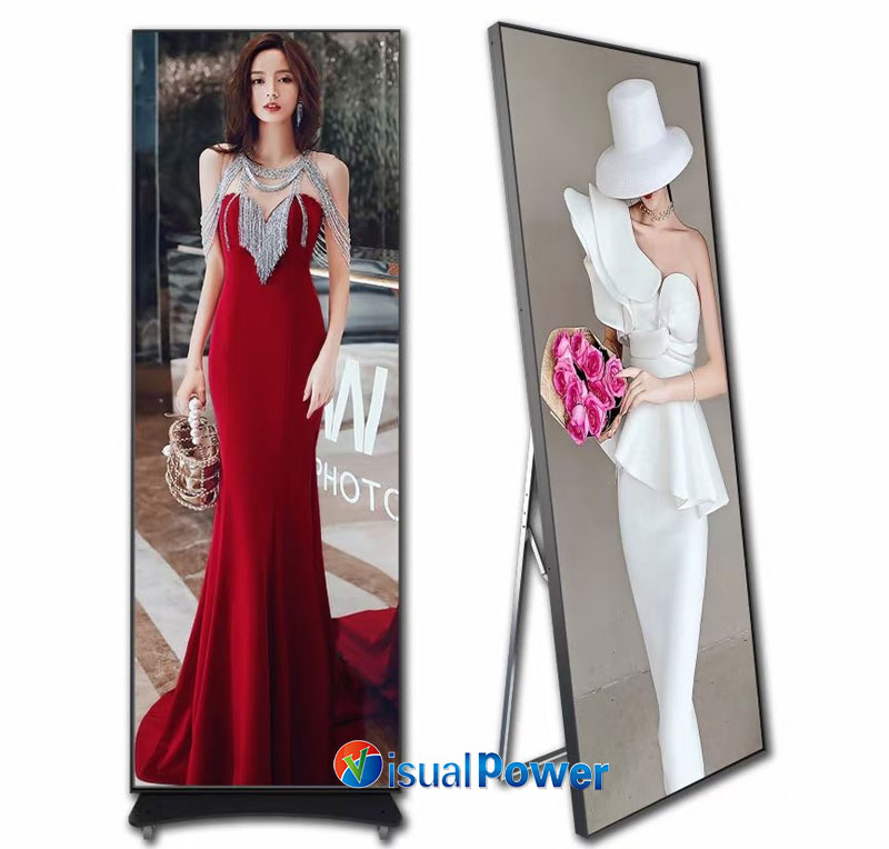 Poster LED Displays have a sleek, minimalist design. Most models follow a 16:9 ratio, looking like a vertical canvas. They’re usually under 40mm thick, with sliding bases, and some can be wall-mounted or suspended. Unlike traditional LED setups that require heavy structures, this feels more like a plug-and-play mobile display.